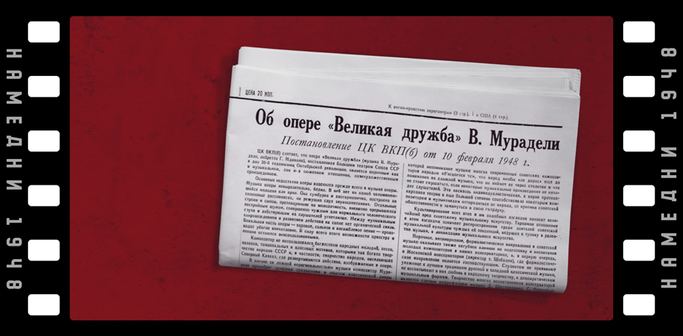 Очередное разгромное постановление ЦК ВКП(б) делит симфоническую и оперную музыку на реалистическую народную и формалистическую антинародную. Чуждыми формалистами объявлены крупнейшие современные композиторы во главе с Дмитрием Шостаковичем и Сергеем Прокофьевым