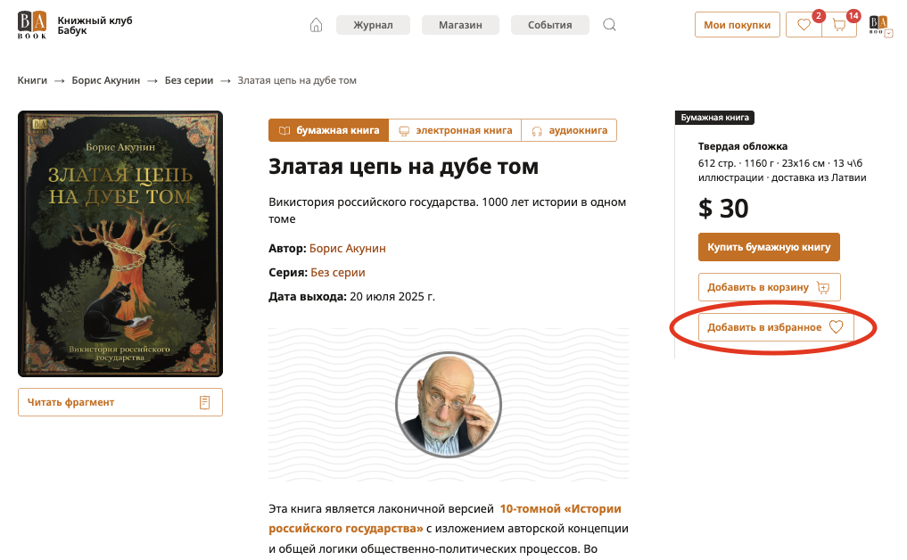 А добавить книгу в ИЗБРАННОЕ можно на странице этой книги: