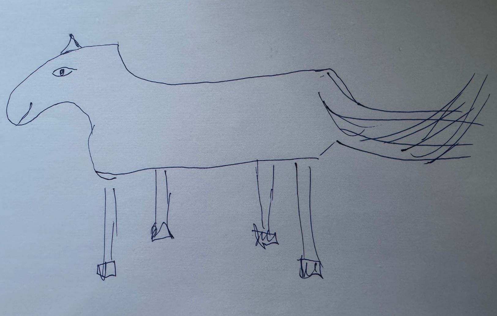 Моя жена катастрофически рисует. Когда мне очень нужно поднять себе настроение, я прошу ее что-нибудь изобразить. В этот раз к Новому Году она мне нарисовала лошадь.