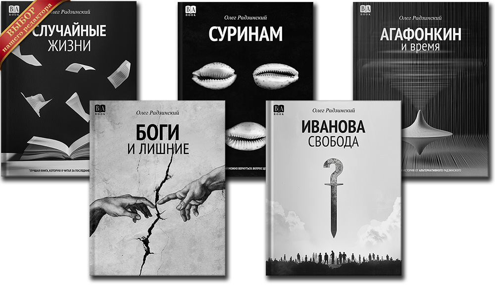 Мы рады сообщить, что с сегодняшнего дня вы можете заказать на нашем сайте бумажные книги Олега Эдвардовича Радзинского: «Случайные жизни», «Суринам», «Агафонкин и время», «Иванова свобода», «Боги и лишние».